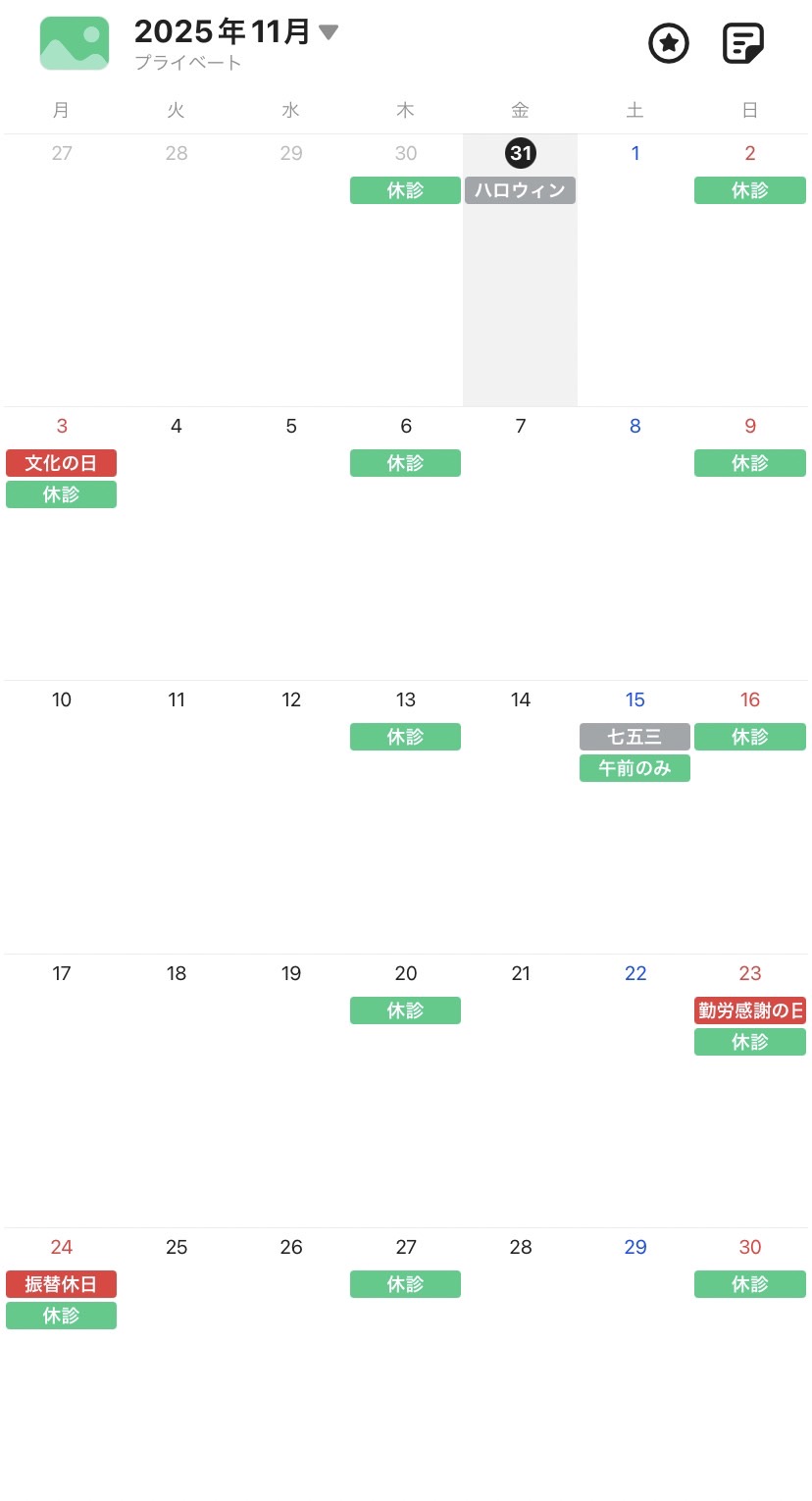 ★16日午前通常/午後7時半まで★20日午前休診/午後通常